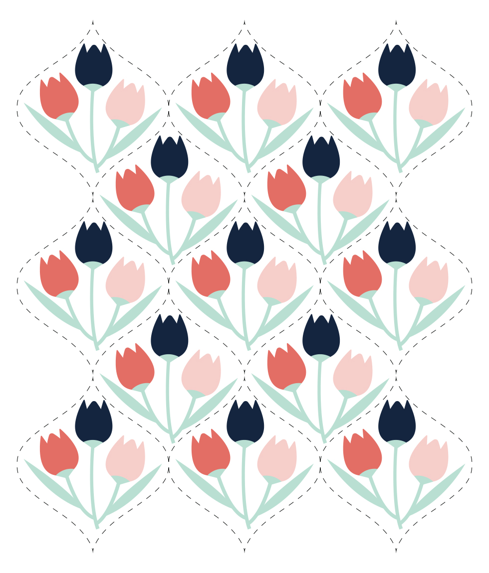 As one of the most commonly used repeat systems, this is a great place to start if you are new to creating seamless pattern designs. It's also the easiest to execute. Simple motifs and geometric elements work best with this system.
